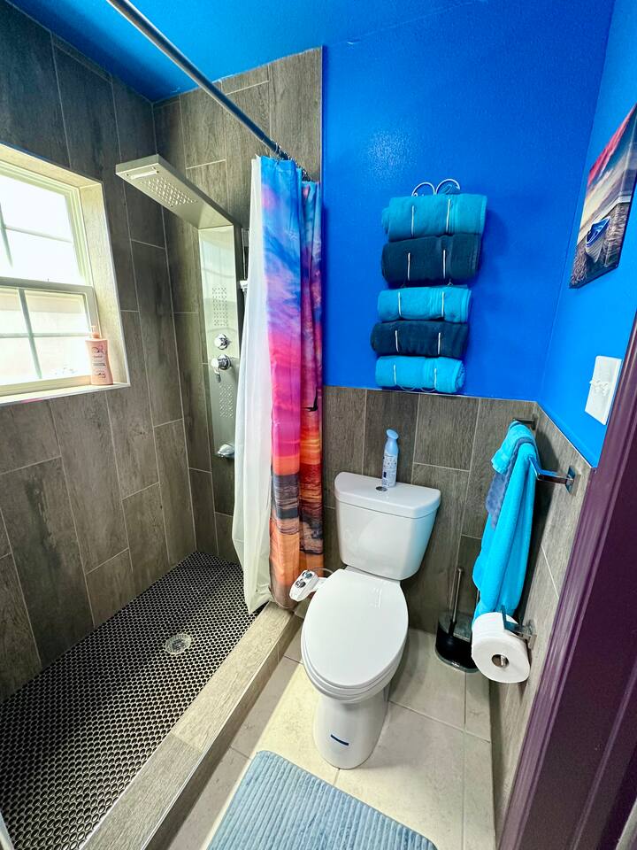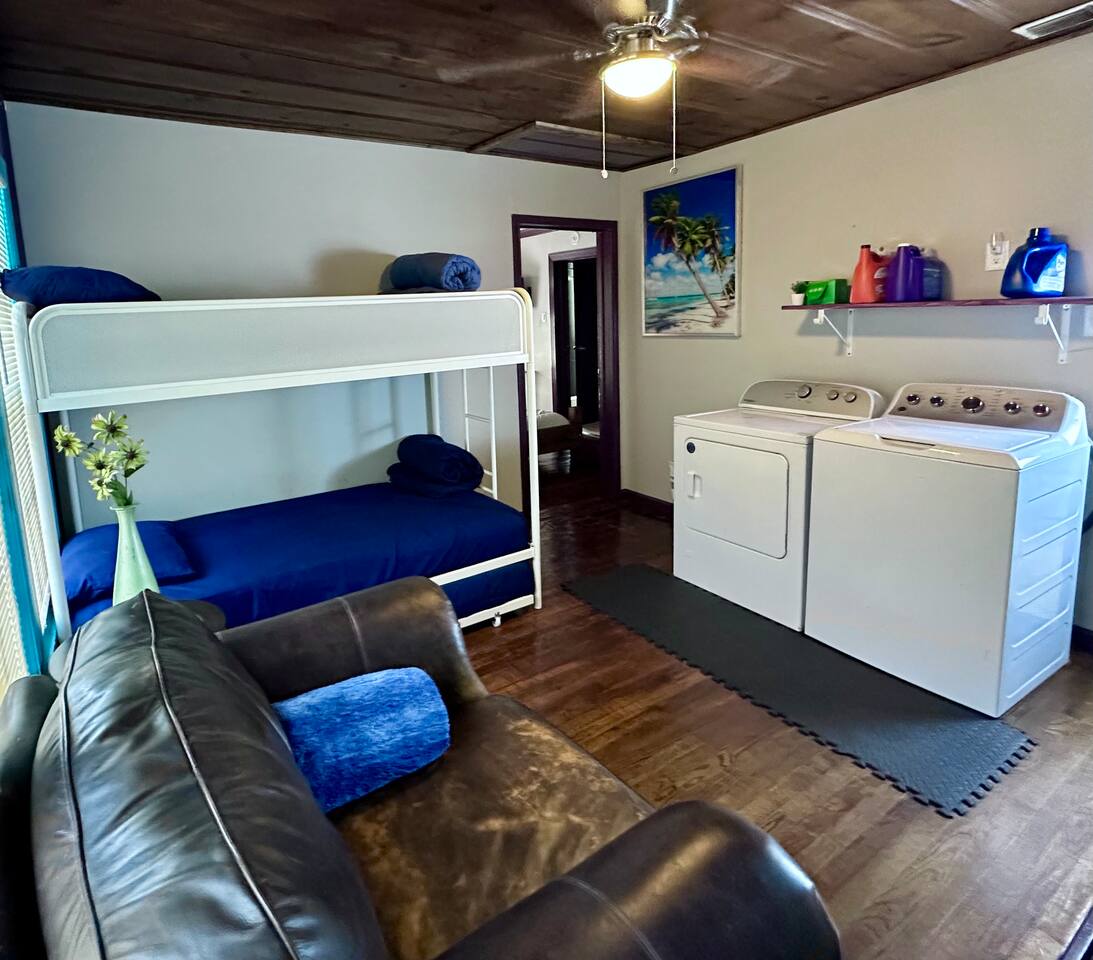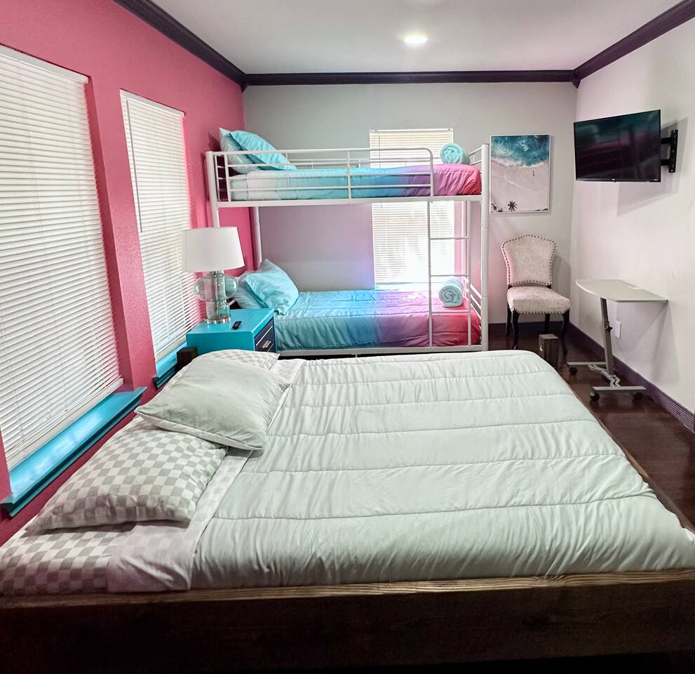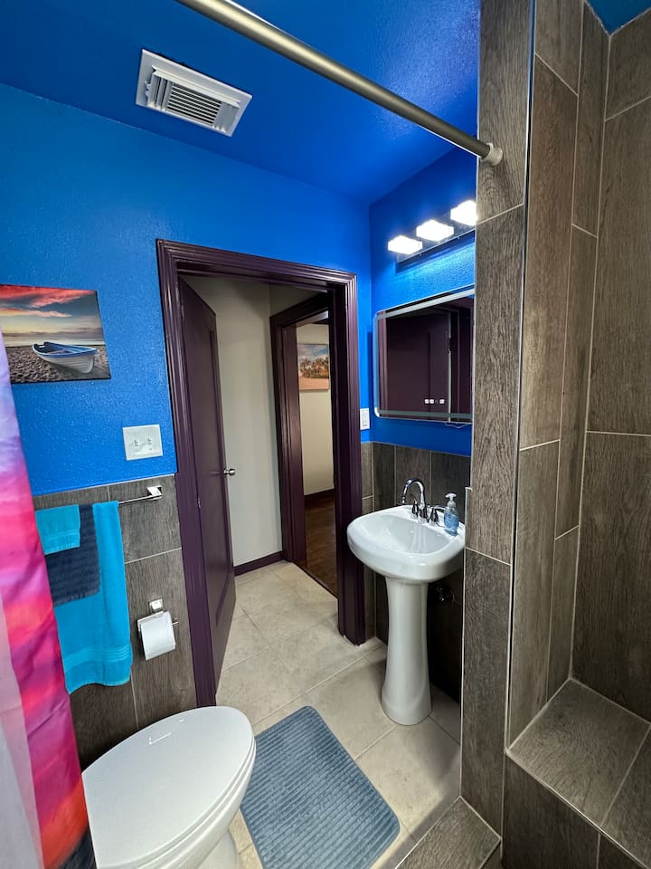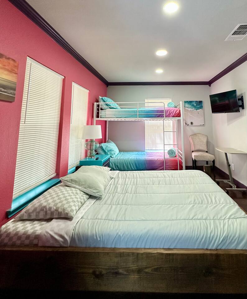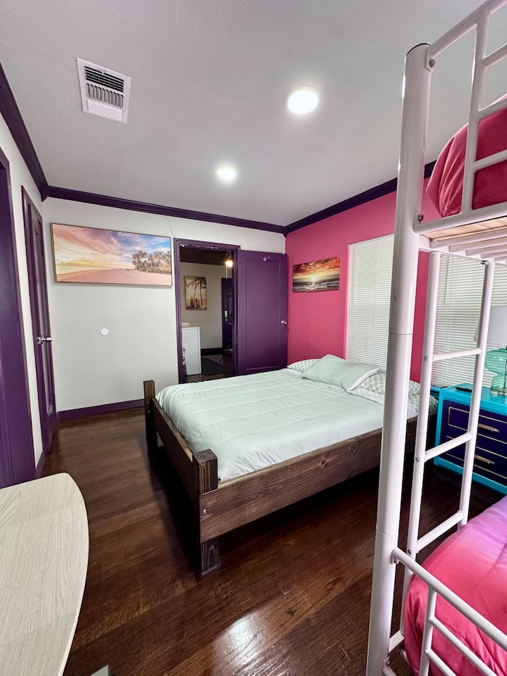 You get to feel spoiled like you have your own private resort with full house access, private fully fenced yard, and private parking in the driveway. I designed the space specifically to host friends and family here during special events and holidays to create magical memories at your home away from home Ina unique awesome space.