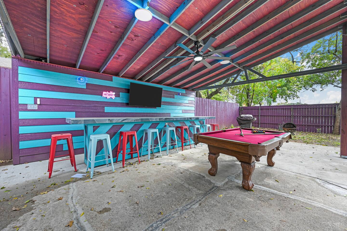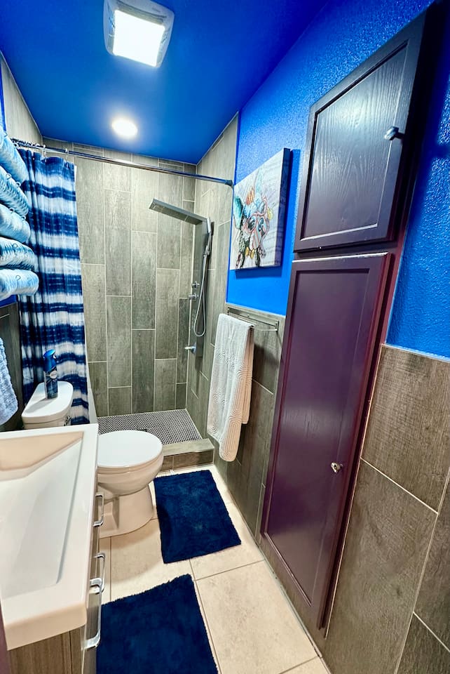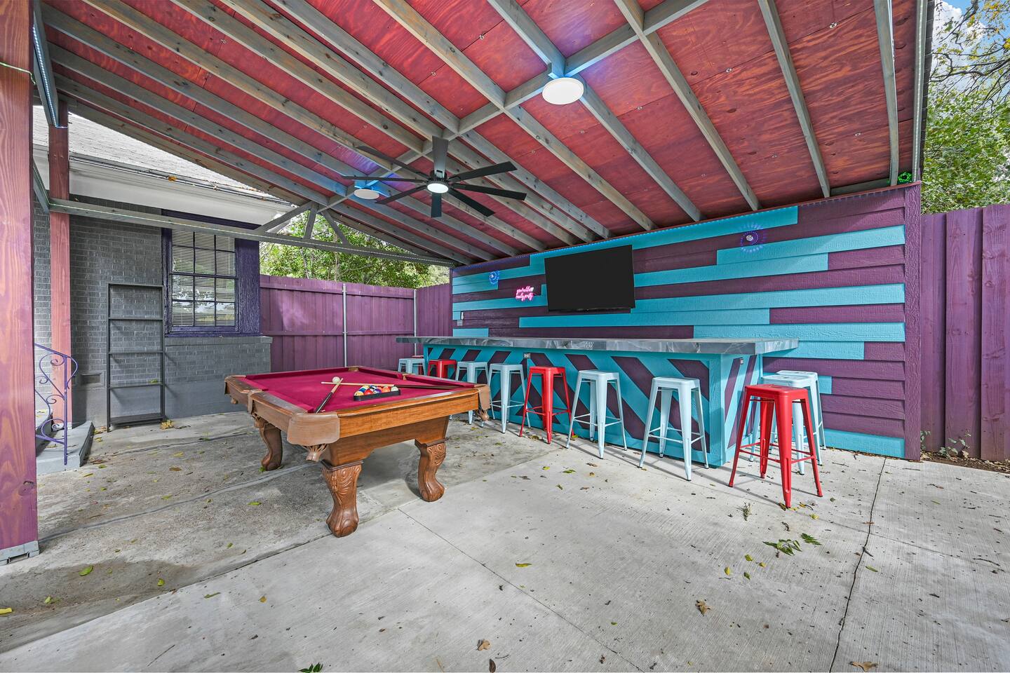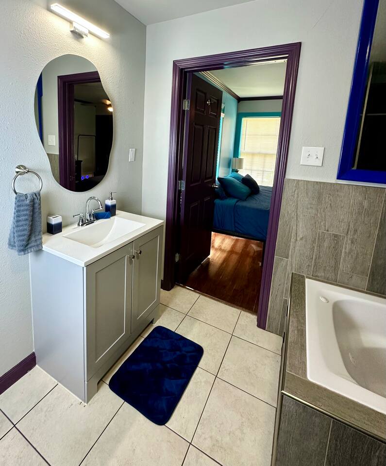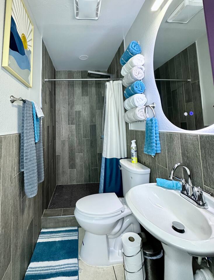 You get to feel spoiled like you have your own private resort with full house access, private fully fenced yard, and private parking in the driveway. I designed the space specifically to host friends and family here during special events and holidays to create magical memories at your home away from home Ina unique awesome space.