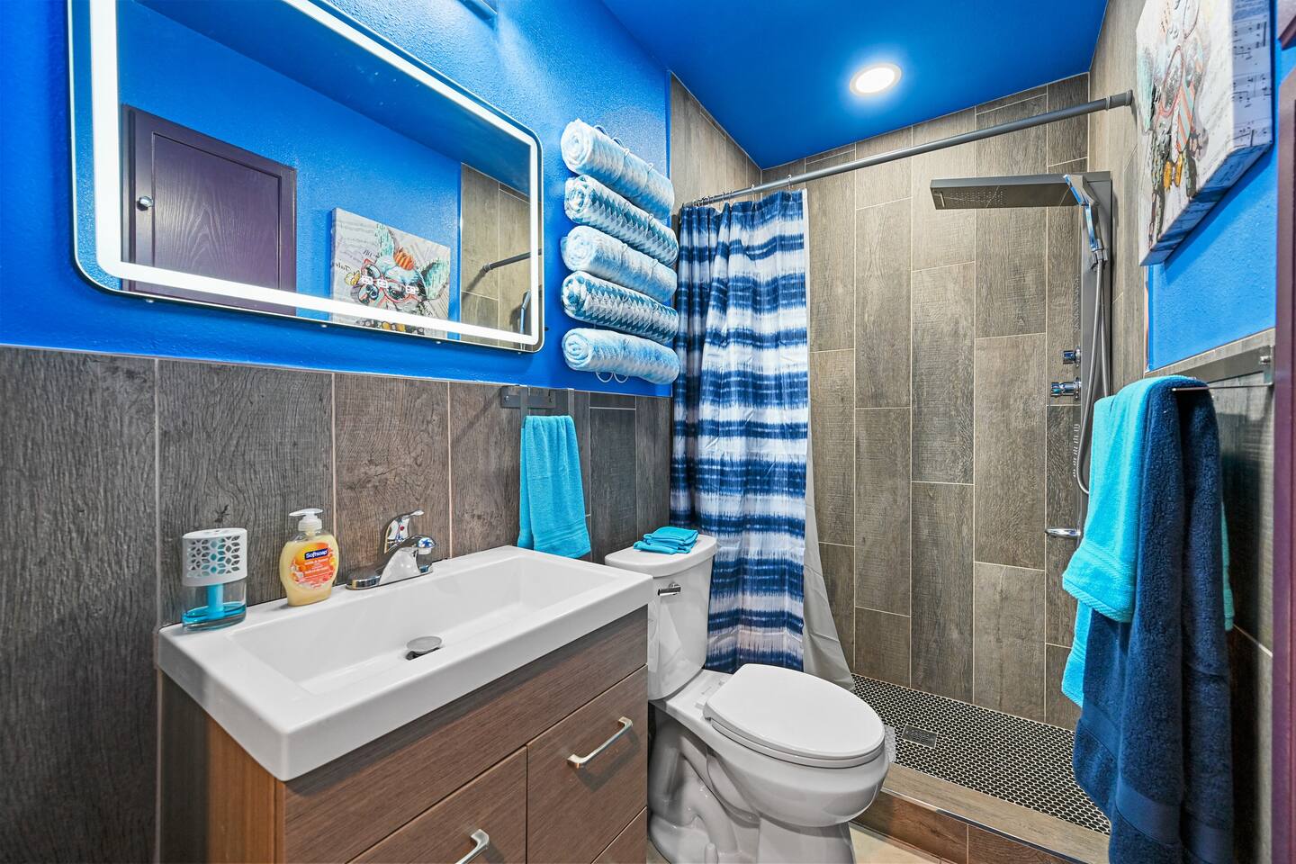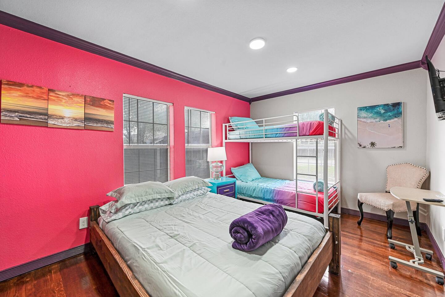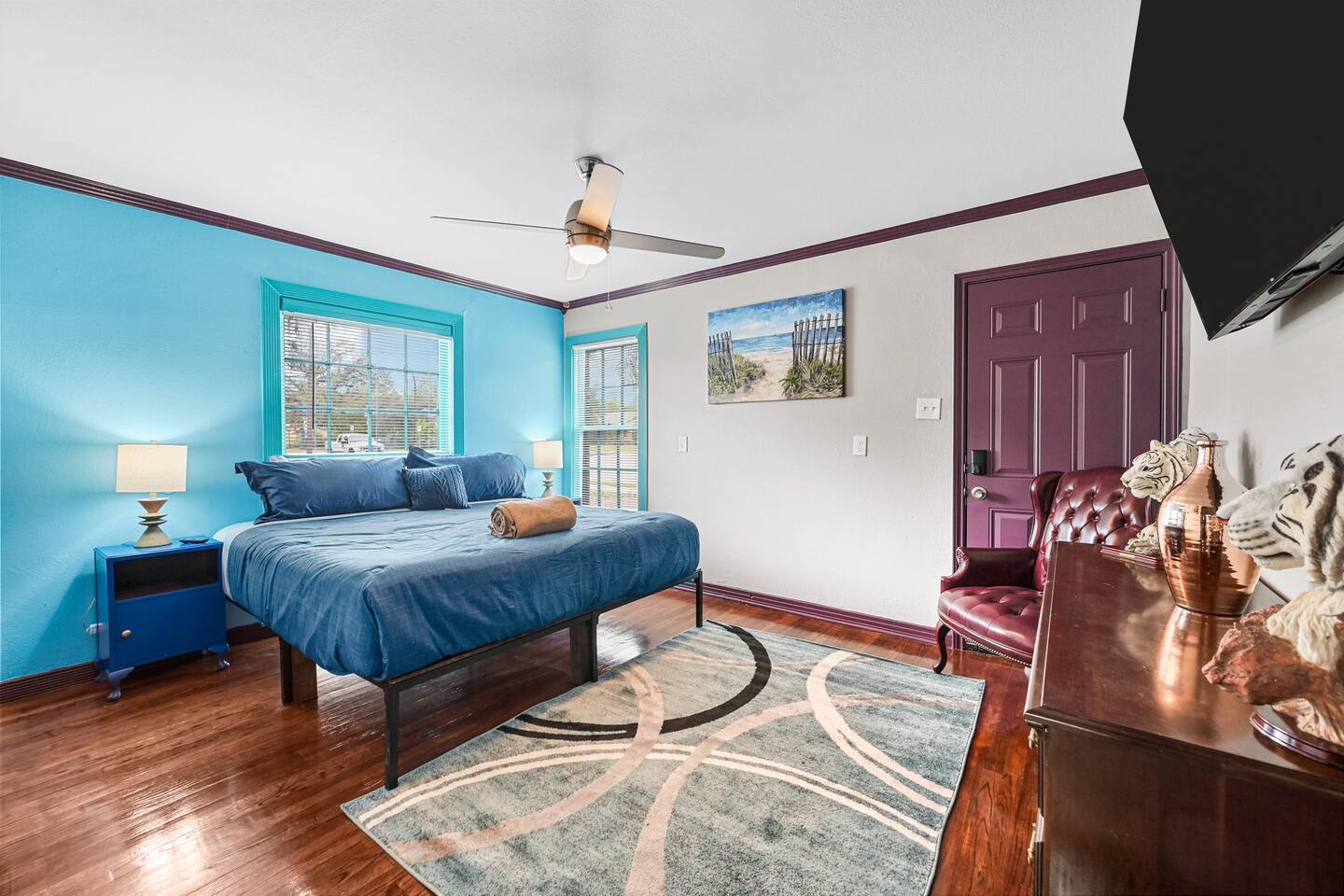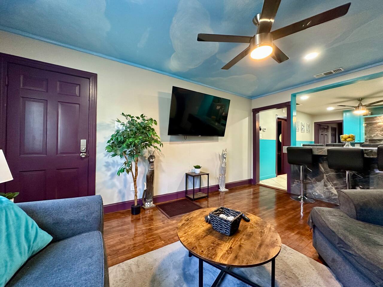 You get to feel spoiled like you have your own private resort with full house access, private fully fenced yard, and private parking in the driveway. I designed the space specifically to host friends and family here during special events and holidays to create magical memories at your home away from home Ina unique awesome space.