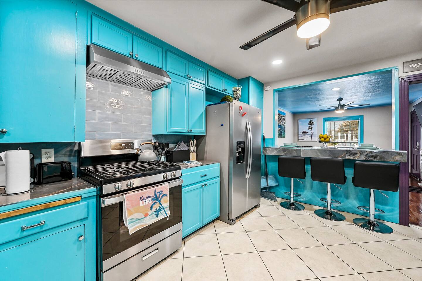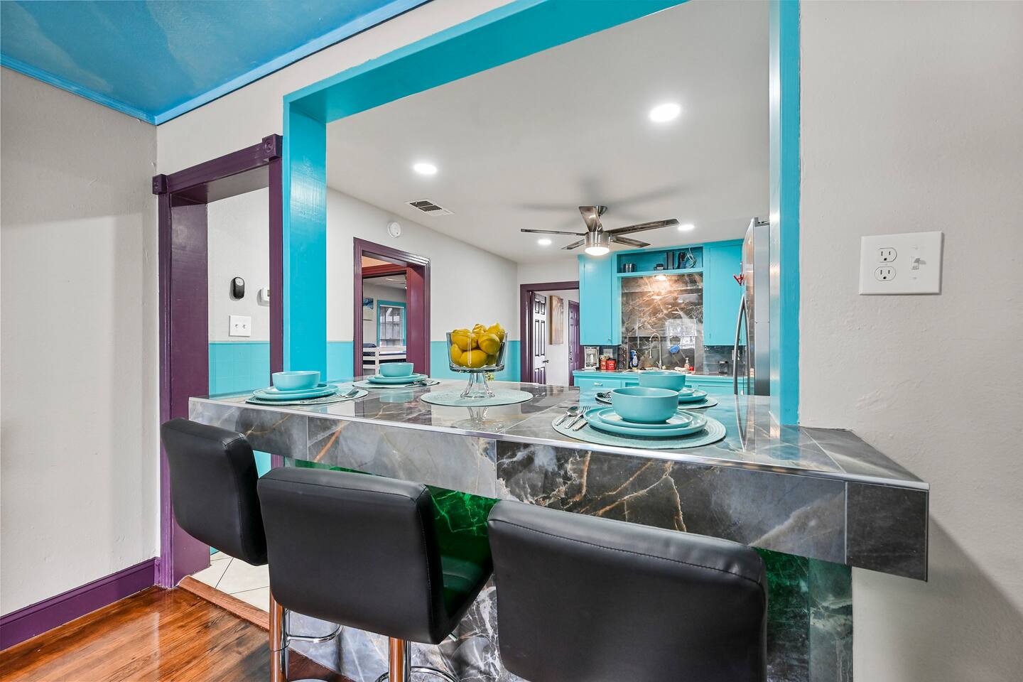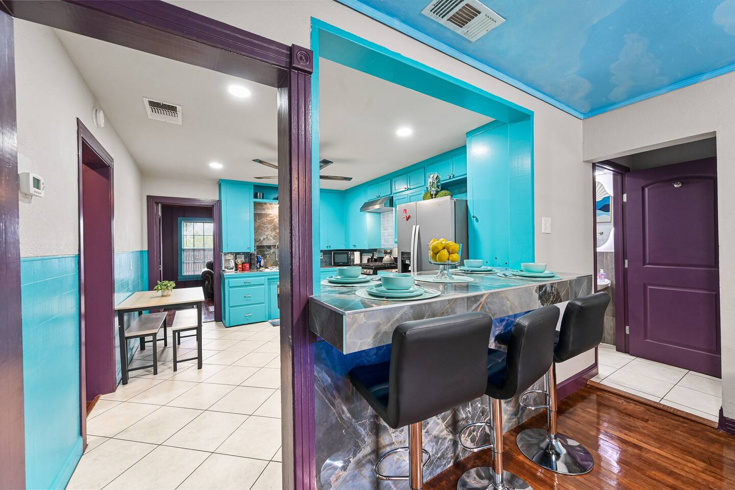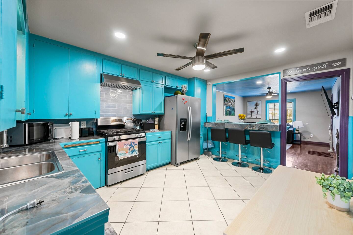 You get to feel spoiled like you have your own private resort with full house access, private fully fenced yard, and private parking in the driveway. I designed the space specifically to host friends and family here during special events and holidays to create magical memories at your home away from home Ina unique awesome space.