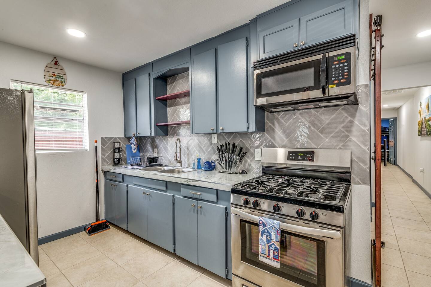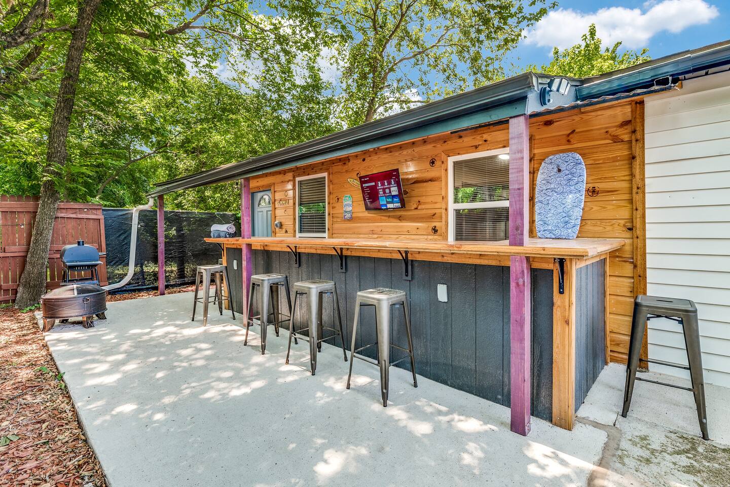 Discover our unique haven, featuring a custom Blues bar and outdoor entertainment space with a TV. Enjoy the hot tub, firepit, and BBQ for unforgettable moments with loved ones. Spa-like bathroom with a 14-jet shower for ultimate relaxation. Just 1 mile from Arlington's best attractions—stadiums, six Flags, dining, and more. Reserve your getaway now!