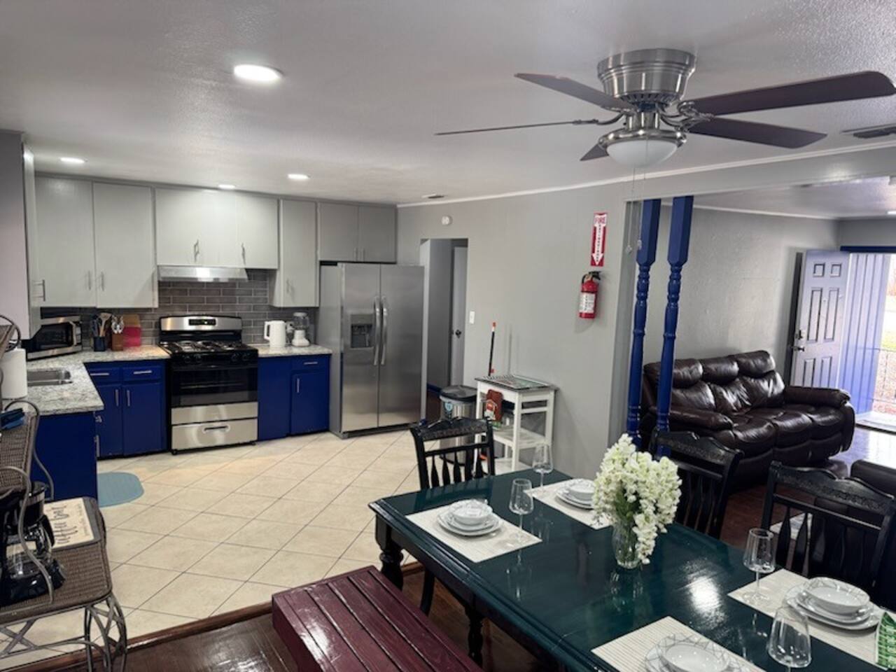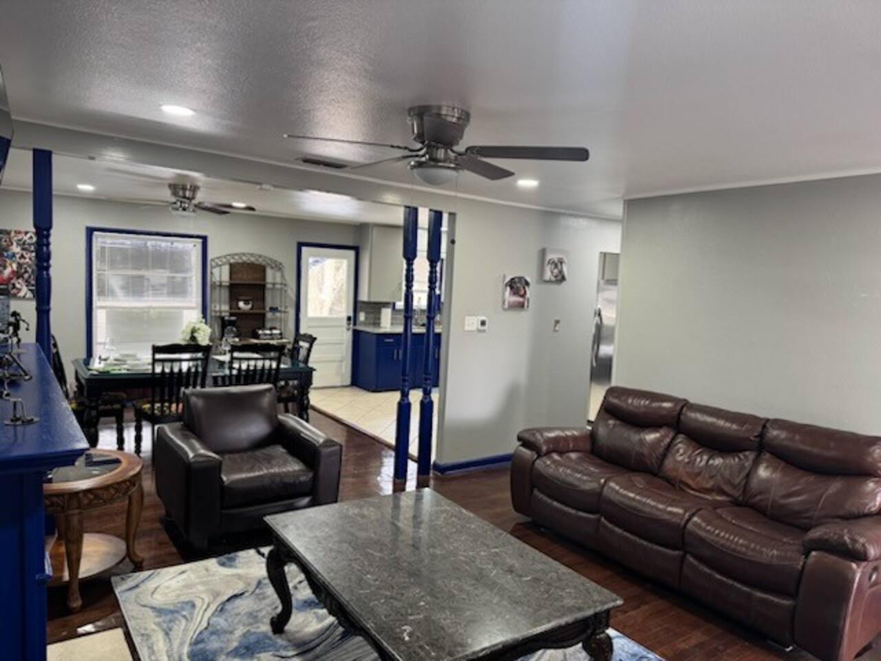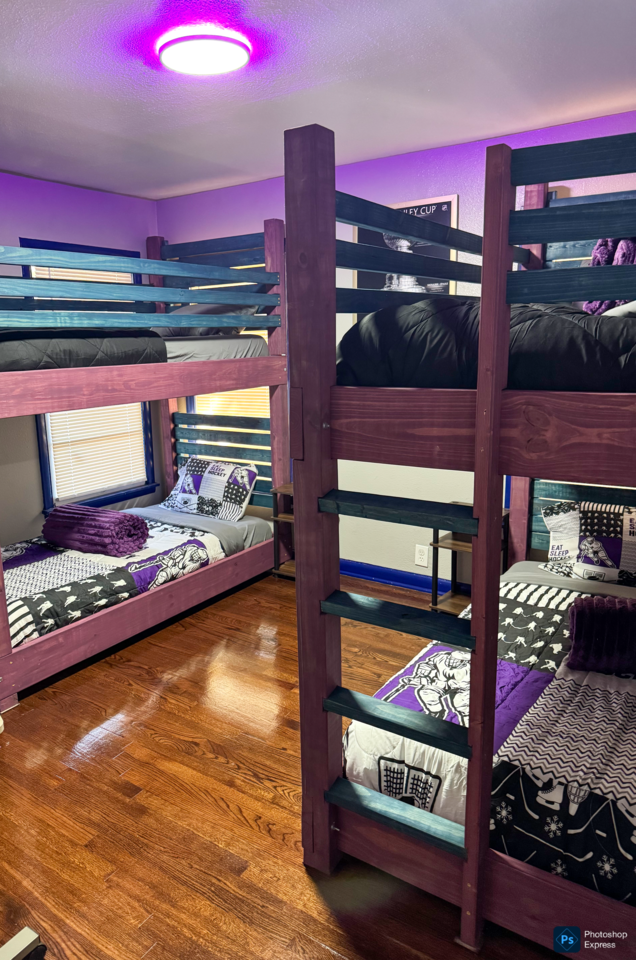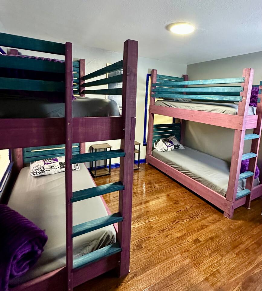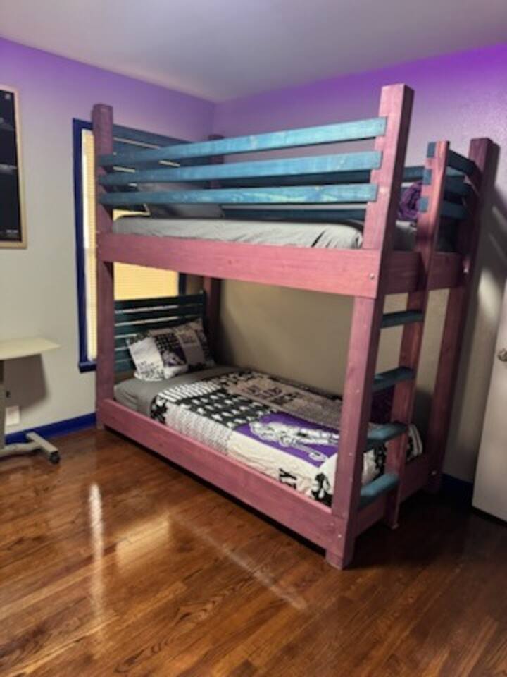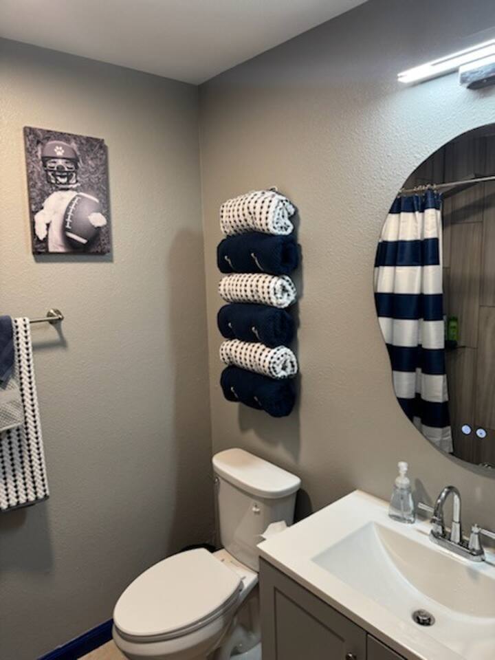 Welcome to our unique sports-themed getaway, designed for fans of football, hockey, and baseball! ๐Cowboys Room: Sleep in style with a luxurious king bed, football-themed bedding, and dรฉcor celebrating Super Bowl victories. A glowing LED mirror adds a modern touch and its own bathroom. ๐ Hockey Bunk Room: Featuring two sturdy twin bunk beds, this space is decked out with hockey-inspired bedding and wall art, illuminated by an adjustable LED ceiling light. โพ Texas Baseball Room: Cozy up in a patriotic, baseball-themed bunk room with rustic furniture, warm red accents, and vintage-style Texas dรฉcor. Relax in Style! Enjoy a spa-like experience in our sleek and stylish bathroom, designed for comfort and convenience. Featuring a luxurious rainfall shower panel with multiple jets, an illuminated LED mirror, and plush team-inspired dรฉcor, fresh towels, premium toiletries, and a clean, modern design ensure a refreshing and relaxing stay. Welcome to your private backyard - The covered patio features a custom sports-themed bar, complete with barstools, a mounted TV, and plenty of seating for guests. Whether you're watching the game or enjoying a cold drink, this space is designed for fun. Step into the expansive backyard, where you'll find a hot tub, a fire pit with bench seating, and a picnic table for outdoor dining. Have fun with life size connect four, String lights and a Texas-inspired ambiance adds a cozy touch, making it the ideal setting for day or night gatherings. This beautifully decorated home offers a cozy living space with plush leather seating, a modern fully equipped kitchen, and a chic dining area. The vibrant blue accents and sports-inspired decor create a unique, inviting atmosphere. Book now for a memorable stay!